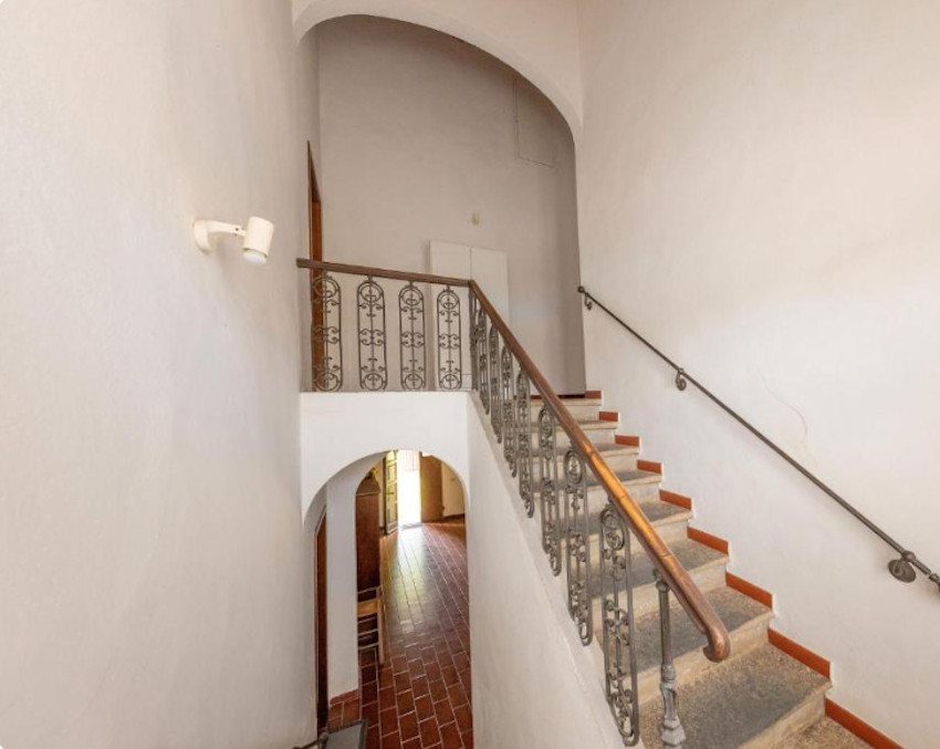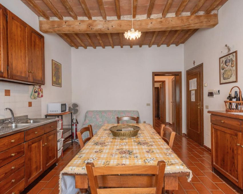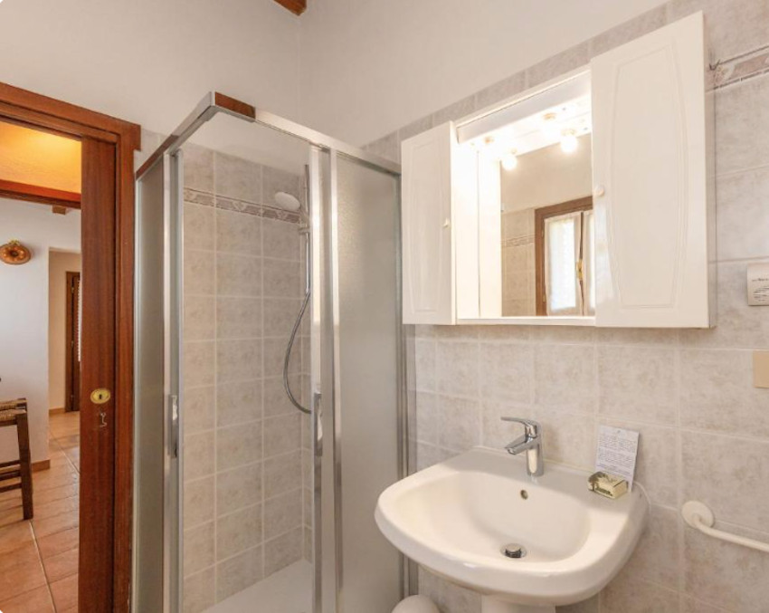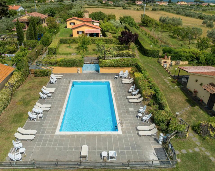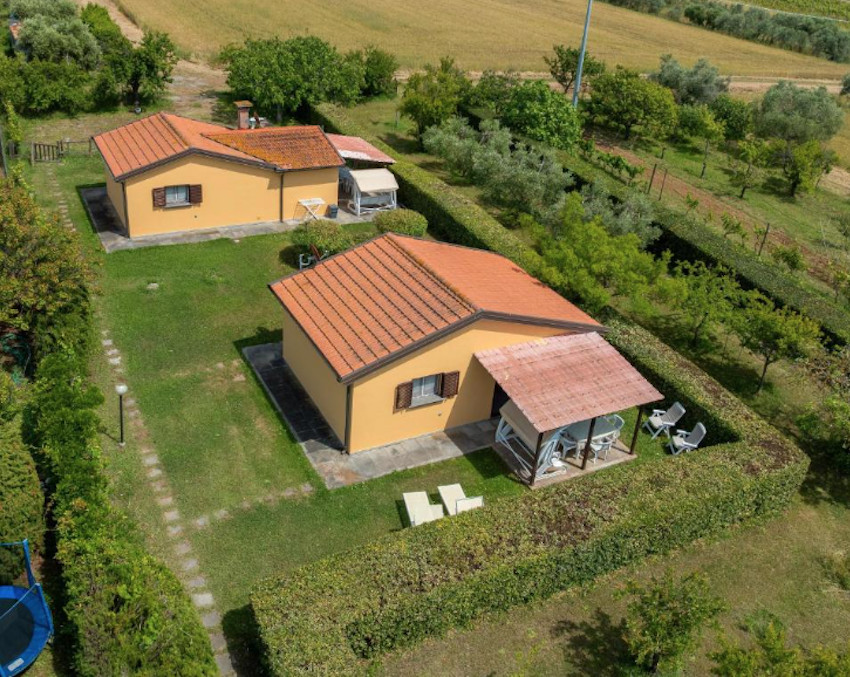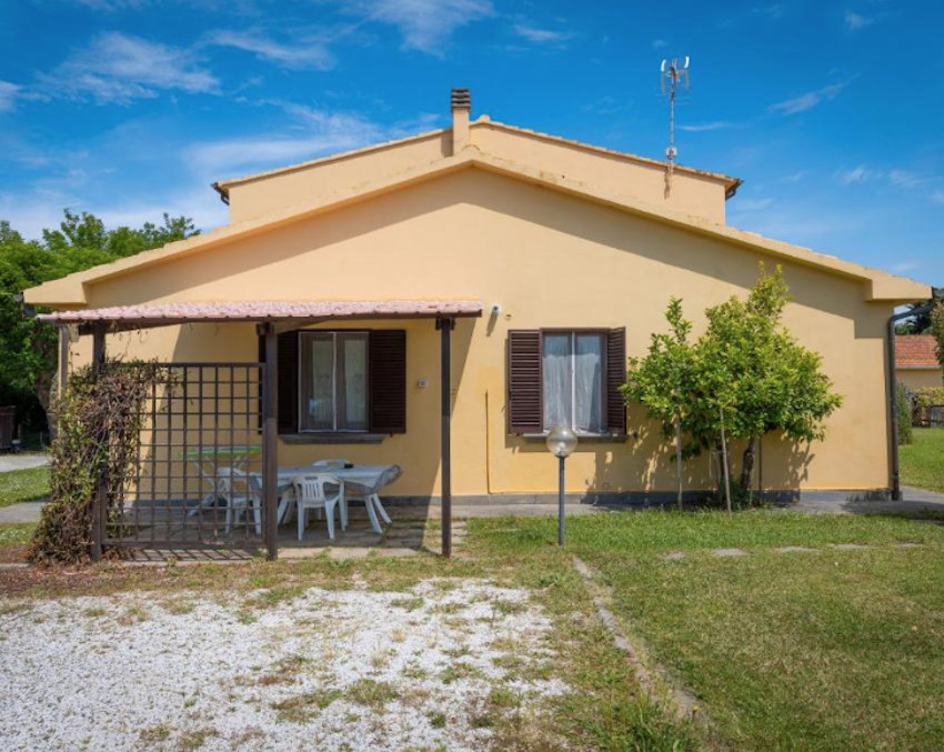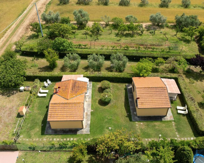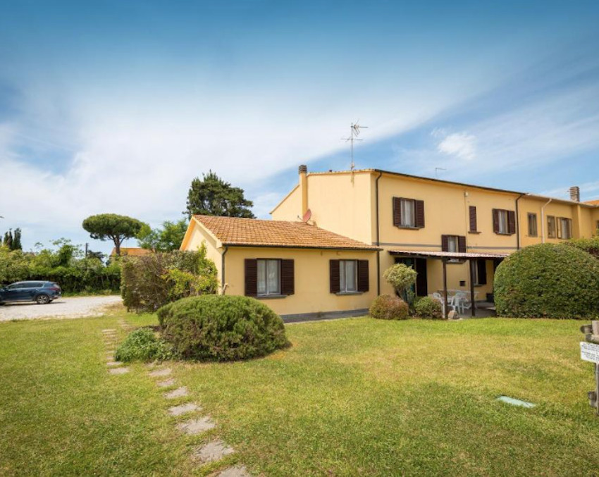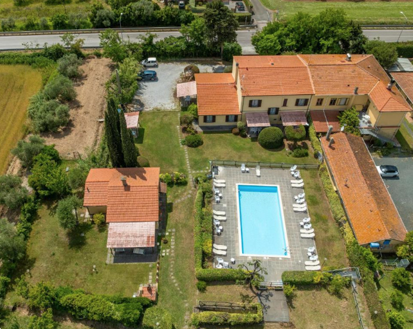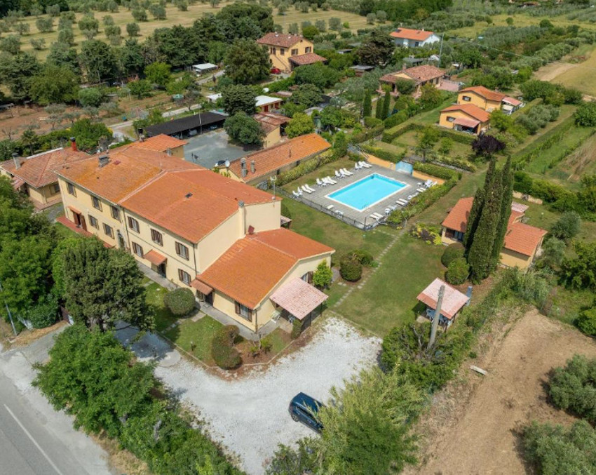 A birtok teljesen körbe van kerítve, bejárata a Cecinából induló ún. régi pisai útról – vecchia Pisana – nyílik. Az elegáns fakapu mögött 5/6 autó számára kényelmes parkolóhelyeket alakítottak ki. A főépület bejárati ajtaja a kapura néz, oldalában és hátsó felén három további ajtó, amelyek a földszinti apartmanok közvetlen kertkapcsolatát biztosítják. Földszinti apartmanból 3 van, két db kétlégterű és egy háromlégterű, az emeletre pedig, ahol további 2 kétlégterű apartman került kialakításra, lépcső vezet.